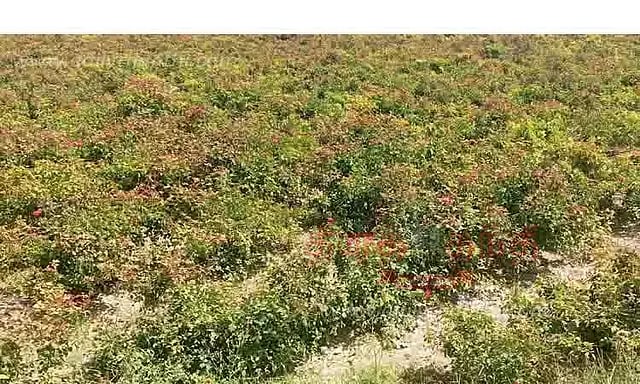 நச்சலூர் அருகே உள்ள முதலைப்பட்டியில் ஒரு வயலில் ரோஜா பூக்கள் பூத்துக்குலுங்குவதை படத்தில் காணலாம்.