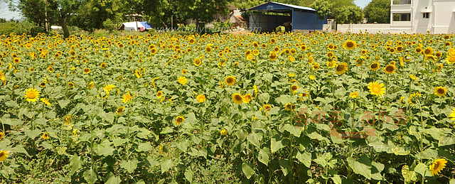 பெரம்பலூர் மாவட்ட பகுதிகளில் சூரியகாந்தி சாகுபடி செய்யப்பட்டுள்ளது. தற்போது சூரியகாந்தி பூக்கள் பூத்து அறுவடைக்கு தயாராக உள்ளன. பெரம்பலூர்-ஆத்தூர் செல்லும் சாலையோரத்தில் கோனேரிபாளையத்தை தாண்டியுள்ள ஒரு வயலில் சூரியகாந்தி பூக்கள் பூத்து குலுங்குகிறது.