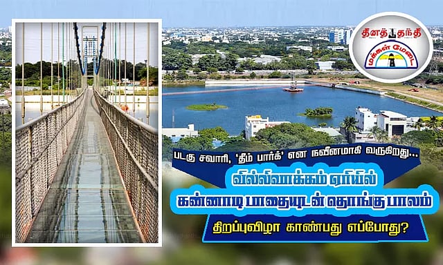 தற்போது வில்லிவாக்கம் ஏரியில் சிங்கப்பூர் நாட்டில் உள்ளது போன்று தொங்கு பாலம் கண்ணாடிப்பாதை அமைக்கப்பட்டுள்ளது குறித்து வெளியாகும் செய்திகள், படங்களை பார்க்கும் போது பிரமிப்பாகவும், வியப்பாகவும் இருக்கிறது. எப்போது இந்த ஏரி பூங்கா திறக்கப்படும், தொங்கு பாலம், கண்ணாடி பாதையில் நடந்து செல்லலாம் என்ற ஆசை அதிகரித்து வருகிறது.