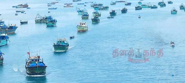 கேரளாவில் இருந்து நாகப்பட்டினம் செல்வதற்காக வந்து பாம்பன் தென்கடல் பகுதியில் நிறுத்தி வைக்கப்பட்டிருந்த 20 ஆழ்கடல் மீன்பிடி படகுகள் ஒன்றன் பின் ஒன்றாக வரிசையாக அணிவகுத்தபடி தூக்குப்பாலத்தை மெதுவாக கடந்து நாகப்பட்டினம் நோக்கி சென்றன. தற்போது தமிழகம் முழுவதும் மீன்கள் இனப்பெருக்க கால சீசன் நடைபெற்று வருவதை தொடர்ந்து வருகின்ற ஜூன் 14-ந் தேதி வரையிலும் மீன்பிடிக்க தடை விதிக்கப்பட்டுள்ளதால் இந்த ஆழ்கடல் மீன்பிடி படகுகள் அனைத்தும் சொந்த ஊரான நாகப்பட்டினத்திற்கு செல்கின்றன என்பது குறிப்பிடத்தக்கது.