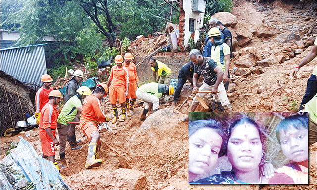 முதல்கட்டமாக அந்த பகுதியில் வசித்த 80 பேர் நிவாரண முகாமிற்கு அழைத்துச்செல்லப்பட்டு தங்க வைக்கப்பட்டனர். தொடர்ந்து மழை பெய்ததாலும் அங்கிருந்து மண்ணை வெளியேற்ற முடியாததாலும் இரவு நேரம் என்பதாலும் மீட்பு பணியில் தொய்வு ஏற்பட்டது.