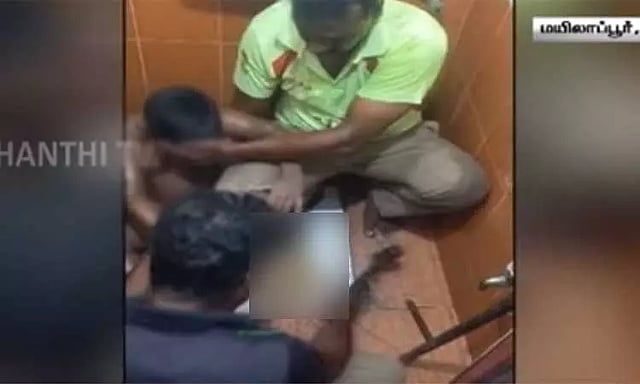 சென்னை மயிலாப்பூரில் 4 வயது சிறுவன் வீட்டின் கழிவறைக்கு குளிக்க சென்ற போது எதிர்பாராத விதமாக வழுக்கி விழுந்ததில் சிறுவனின் கால் கழிவறையின் பீங்கான் துளைக்குள் சிக்கியது. காலை வெளியே எடுக்க முடியாததால் சிறுவன் கூச்சலிட்டுள்ளான்.