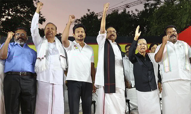 மும்மொழி கொள்கையை அமல்படுத்தினால் தான் தமிழகத்திற்கு நிதி தருவோம் என்று மத்திய மந்திரி கூறியதற்கு தி.மு.க. மட்டுமின்றி கூட்டணி கட்சிகளும் எதிர்ப்பு தெரிவித்திருந்தனர். மேலும் மத்திய பட்ஜெட், மும்மொழி கொள்கை, யு.ஜி.சி. விதி என எல்லாவற்றிலும் மத்திய அரசு தமிழகத்தை வஞ்சித்து வருவதாகவும் தி.மு.க. கூட்டணி கட்சிகள் தெரிவித்து வந்தன.