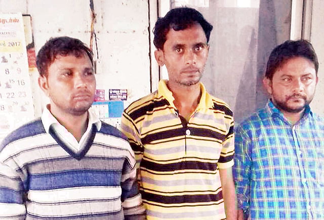 விசாரணையில் அவர்கள் 3 பேரும் கோவை ஏ.டி.எம். கொள்ளையில் தொடர்புடையவர்கள் என்பது தெரியவந்தது. அவர்கள் அரியானா மாநிலத்தை சேர்ந்த அமீன் (34), சுபேர் என்கிற சுரேஷ் (33), ராஜஸ்தான் மாநிலத்தை சேர்ந்த மோசன் (34) என்பது தெரிந்தது. 3 பேரையும் போலீசார் கைது செய்து கோவை போலீசாரிடம் ஒப்படைத்தனர்.