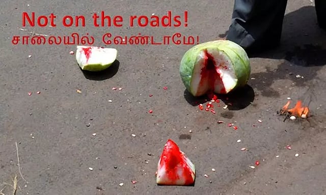 சாலை பாதுகாப்புக்காக, சாலையில் பூசணிக்காய் உடைக்க வேண்டாம்.