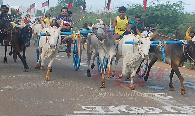 காளையார்கோவிலில் அமைச்சர் உதயநிதி ஸ்டாலின் பிறந்த நாளையொட்டி மாட்டு வண்டி பந்தயம் காளையார்கோவில்-தொண்டி சாலையில் நடைபெற்றது. இதில் மொத்தம் 34 வண்டிகள் கலந்துகொண்டு பெரியமாட்டு வண்டி பந்தயம், சின்ன மாட்டு வண்டி பந்தயம் என இருபிரிவாக நடைபெற்றது. முதலில் நடைபெற்ற பெரியமாட்டு வண்டி பந்தயத்தில் 12 வண்டிகள் கலந்துகொண்டு முதல் பரிசை புதுப்பட்டி இளையராஜா மற்றும் தேவாரம் ஈஸ்வரன் வண்டியும், 2-வது பரிசை பரவை சோனைமுத்து மற்றும் நைனார்பட்டி மூக்கையா வண்டியும், 3-வது பரிசை உலகுபிச்சான்பட்டி ரமேஷ்ராஜா மற்றும் சூசையப்பர்பட்டினம் ஜான்சந்தியாகு வண்டியும் பெற்றது. பின்னர் நடைபெற்ற சின்னமாட்டு வண்டி பந்தயத்தில் 22 வண்டிகள் கலந்துகொண்டு முதல் பரிசை இளங்கிப்பட்டி அர்ச்சுணன் வண்டியும், 2-வது பரிசை வெட்டிவயல் சுந்தரேசன் வண்டியும், 3-வது பரிசை கடுகுசந்தை தவம் வண்டியும் பெற்றது. வெற்றி பெற்ற வண்டிகளின் உரிமையாளர்களுக்கு தமிழரசி, எம்.எல்.ஏ பரிசுகளை வழங்கினார்.