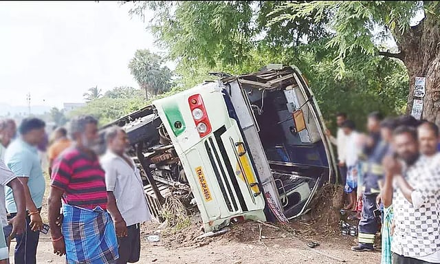 இந்த நிலையில் திருப்பத்தூர் மாவட்டம் குனிச்சியில் இருந்து அந்த தனியார் நிறுவனத்திற்கு ஊழியர்களை ஏற்றிக் கொண்டு நிறுவன பஸ் நேற்று காலை புறப்பட்டது.