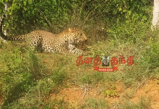 திடீரென திரும்பிய அந்த சிறுத்தை அங்கு நின்ற உதவி வனப்பாதுகாவலர் மகேந்திரன் மீது பாய்ந்து அவரை தாக்கியது. இதில் அவர் வலியால் அலறி துடித்தார். பின்னர் வனத்துறையினர் சிறுத்தையை வனப்பகுதிக்குள் விரட்டினர்.