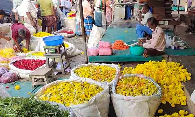 நவராத்திரி விழாவையொட்டி பொதுமக்கள் அதிக அளவில் பூக்கள் வாங்க ஆர்வம் காட்டுவதால் வியாபாரிகள் போட்டி போட்டுக் கொண்டு பூக்களை வாங்கி செல்கின்றனர். வழக்கத்தை காட்டிலும் நேற்று மார்க்கெட்டில் வியாபாரிகள் மற்றும் பொதுமக்கள் கூட்டம் அலைமோதியது.