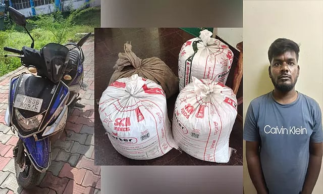 அப்போது அவர்கள் போலீசாரைக் கண்டதும் தப்பி செல்ல முயன்றதில், மேற்சொன்ன சுதர்சன் என்பவரை மட்டும் போலீசார் மடக்கி பிடித்தனர். அவரது பைக் மற்றும் 100 கிலோ கஞ்சா பிடிபட்டது. மற்ற நபர்கள் தப்பி ஓடிவிட்டனர். பிடிபட்ட நபரிடம் மேற்கொண்ட விசாரணையில் தூத்துக்குடி தேவர்காலனி பகுதியைச் சேர்ந்த முட்டை சுரேஷ் என்பவர், மேற்சொன்ன கஞ்சா பொட்டலங்களை இலங்கைக்கு கடத்துவதற்காக மற்றொரு கும்பலுக்கு விற்க இருந்தது தெரியவந்தது.