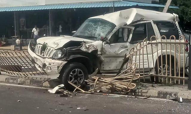 வெள்ளகோவில் அருகே ஓலப்பாளையம் என்ற இடத்தில் காங்கயத்திலிருந்து லாரி ஒன்று வெள்ளகோவில் நோக்கி வந்து கொண்டிருந்தது. அதற்கு பின்னால் காங்கயத்தில் இருந்து வெள்ளகோவில் நோக்கி கார் ஒன்று ஓலப்பாளையம் அருகே வரும்போது திடீரென லாரியின் ஓட்டுனர் லாரியை பிரேக் போட்டதாக கூறப்படுகிறது.