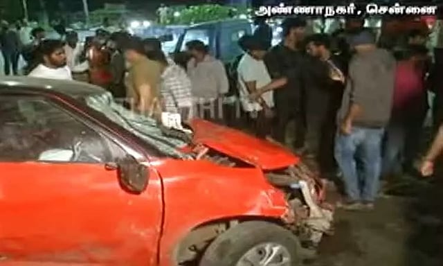 சென்னை அண்ணாநகர் 2-வது அவென்யூ பிரதான சாலையில் இன்று அதிகாலை 2.30 மணியளவில், அதிவேகமாக சென்று கொண்டிருந்த கார் ஒன்று ஓட்டுநரின் கட்டுப்பாட்டை இழந்து சாலையில் நடந்து சென்றவர்கள் மீது மோதி விபத்திற்குள்ளானது.