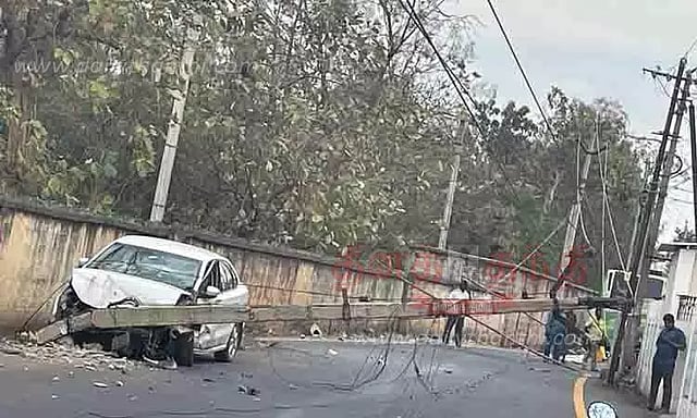 திருச்சி மத்திய பஸ் நிலையம் அருகே வ.உ.சி. சாலையில் நேற்று மாலை கார் ஒன்று வேகமாக சென்றது. அந்த கார் திடீரென சாலையோரம் இருந்த மின்கம்பத்தில் பயங்கரமாக மோதியது. இதில் காரின் முன்பகுதி நொறுங்கி சேதம் அடைந்தது. காரை ஓட்டி வந்த நபர் காயம் அடைந்தார். மேலும், மோதிய வேகத்தில் மின் கம்பம் சாய்ந்து மின்கம்பிகள் சாலையில் விழுந்து கிடந்தன. இதைக்கண்ட அந்த பகுதியினர் காயத்துடன் இருந்த நபரை மீட்டு மருத்துவமனைக்கு அனுப்பி வைத்தனர். மேலும் உடனடியாக மின்வாரிய அலுவலகத்துக்கு தகவல் தெரிவித்தனர். இதையடுத்து அங்கு வந்த மின்வாரிய ஊழியர்கள் அந்த பகுதியில் மின்சார இணைப்பை துண்டித்தனர். மேலும், சாய்ந்து கிடந்த மின்கம்பத்தை சீரமைக்கும் பணியில் ஈடுபட்டனர். இதற்கிடையே சம்பவ இடத்துக்கு வந்த தெற்கு போக்குவரத்து புலனாய்வு பிரிவு போலீசார் இது குறித்து விசாரணை நடத்தினர். இந்த சம்பவத்தால் அந்த பகுதியில் போக்குவரத்து பாதிக்கப்பட்டது. இதையடுத்து வாகனங்கள் மாற்றுப்பாதையில் திருப்பி விடப்பட்டன.