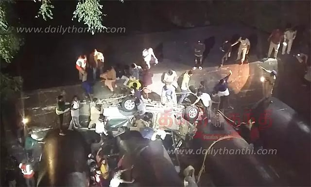 இந்த விபத்தில் காரின் இடிபாடுகளில் சிக்கி, அதில் வந்த அய்யப்ப பக்தர்கள் 8 பேர் உடல் நசுங்கி சம்பவ இடத்திலேயே பரிதாபமாக இறந்தனர். மேலும் சிறுவன், கார் டிரைவர் உள்பட 3 பேர் படுகாயத்துடன் உயிருக்கு போராடினர். தேனி அரசு மருத்துவமனையில் அனுமதிக்கப்பட்ட இருவருக்கும் தீவிர சிகிச்சை அளிக்கப்பட்டு வருகிறது.