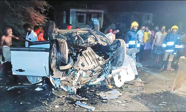 விபத்து காரணமாக அங்கு ஒரு மணி நேரம் போக்குவரத்து பாதிக்கப்பட்டது.