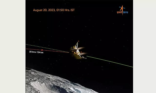 நிலவின் தென்துருவத்தை ஆய்வு செய்வதற்காக இஸ்ரோ அனுப்பிய சந்திரயான்-3 வின்கலம் எல்விஎம் ஜிஎஸ்எல்வி மார்க்-3 ராக்கெட் மூலம் ஸ்ரீஹரிகோட்டாவில் இருந்து கடந்த ஜூலை 14ஆம் தேதி விண்ணில் செலுத்தப்பட்டது.