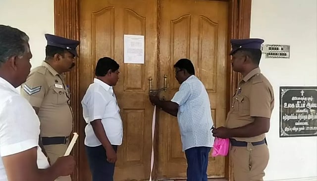ஆர்.எஸ்.மங்கலம் தாலுகா புல்லமடை குரூப் வல்லமடை கிராமத்தில் சிவகங்கை மறை மாவட்டத்திற்கு உட்பட்ட கொக்கூரணி பங்கு சார்ந்த உலக ரட்சகர் கிறிஸ்தவ ஆலயம் உள்ளது. இங்கு திருப்பலி, திருவிழா நடத்துவது தொடர்பாக இருதரப்பினர் இடையே பிரச்சினை ஏற்பட்டது. இந்தநிலையில் இரு தரப்பினருக்கு இடையே வாக்குவாதம் ஏற்பட்டு இரு தரப்பினரும் மாறி மாறி தாக்கி கொண்டனர். இதையடுதுது ஆர்.எஸ்.மங்கலம் போலீஸ் இன்ஸ்பெக்டர் பாஸ்கரன் பரிந்துரையின்படி ஆர்.எஸ்.மங்கலம் தாசில்தார் சேகர் தற்காலிகமாக ஆலயத்திற்கு சீல் வைக்க உத்தரவிட்டார். இதைத்தொடர்ந்து ஆலயத்திற்கு சீல் வைக்கப்பட்டு போலீஸ் பாதுகாப்பு போடப்பட்டு உள்ளது.