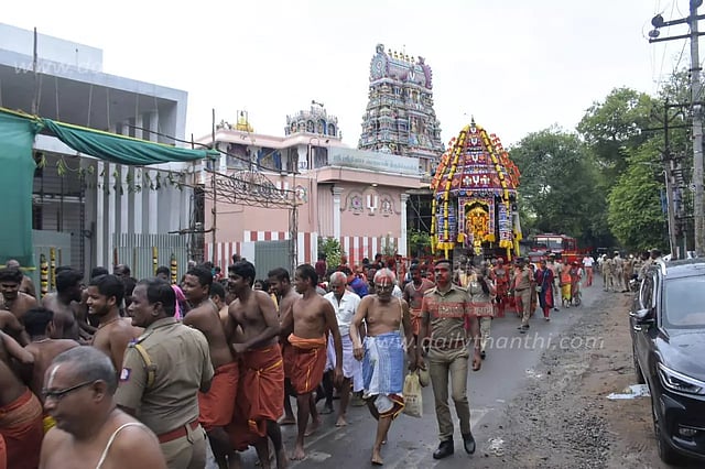 மயிலாடுதுறை அருகே திருவிழந்தூர் பல்லவராயன் பேட்டையில் தென் திருப்பதி என்று அழைக்கப்படும் வெங்கடாஜலபதி கோவிலில் புரட்டாசி மாத பிரமோற்சவ விழா நடந்தது. விழாவையொட்டி கடந்த 15- ந் தேதி இரவு அனுக்ஞை, விக்னேஸ்வர பூஜைகளுடன் விழா தொடங்கியது. தொடர்ந்து பல்வேறு பூஜைகள் நடைபெற்று கடந்த 24-ந் தேதி ஞாயிற்றுக்கிழமை அலமேலுமங்கைக்கும், சீனிவாசபெருமாளுக்கும் திருக்கல்யாணம் நடந்தது. இதனை தொடர்ந்து நேற்று முன்தினம் காலை வெண்ணெய்த்தாழியும், இரவு குதிரை வாகனத்தில் சாமி புறப்பாடும் நடந்தது. இதனை தொடர்ந்து நேற்று தேர் திருவிழா நடந்தது. இதில் ஏராளமான பக்தர்கள் கலந்து கொண்டு 'கோவிந்தா, கோவிந்தா' என்று கோஷமிட்டப்படி தேரை வடம் பிடித்து இழுத்து சென்றனர். நான்கு வீதிகளையும் சுற்றி வந்த தேர் மீண்டும் நிலையை அடைந்தது. இதில் ஏராளமான பக்தர்கள் கலந்து கொண்டனர்.