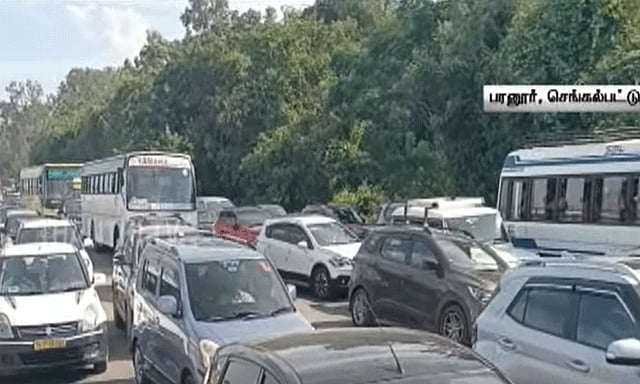 மொத்தம் 5 வாகனங்கள் விபத்தில் சிக்கியதால் பரனூர் சுங்கச்சாவடி அருகே கடும் போக்குவரத்து நெரிசல் ஏற்பட்டது. நாளை திங்கள்கிழமை பக்ரீத் பண்டிகை விடுமுறையை முன்னிட்டு சென்னையில் இருந்து ஏராளமான மக்கள் தங்கள் சொந்த ஊர்களுக்கு சென்று வருகின்றனர். இந்நிலையில் இந்த விபத்தின் காரணமாக சென்னை-திருச்சி தேசிய நெடுஞ்சாலையில் கடும் போக்குவரத்து நெரிசல் ஏற்பட்டது. இதனால் வாகனங்கள் சுமார் 5 கி.மீ. தூரத்திற்கு ஒன்றன்பின் ஒன்றாக அணிவகுத்தபடி செல்லும் நிலை ஏற்பட்டது.