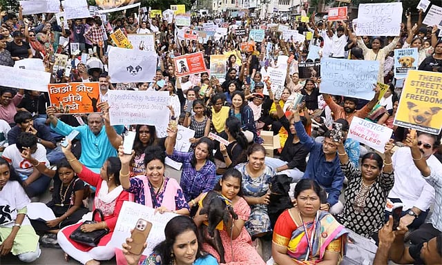 இந்நிலையில், தெருநாய்களை காப்பகங்களில் அடைக்கும் சுப்ரீம் கோர்ட்டு உத்தரவை எதிர்த்து பல்வேறு மாநிலங்களில் விலங்குகள் நல வாரிய அமைப்புகள் போராட்டத்தில் ஈடுபட்டு வருகின்றனர். அந்த வகையில் சென்னை எழுப்பூரில் விலங்குகள் நல வாரிய அமைப்புகள் சார்பில் இன்று அமைதி பேரணி நடைபெற்றது. இந்த பேரணியில் தெருநாய்கள் விவகாரத்தில் சுப்ரீம் கோர்ட்டு பிறப்பித்த உத்தரவை கண்டித்து விலங்குகள் நல ஆர்வளர்கள் பேரணியில் ஈடுபட்டனர்.
