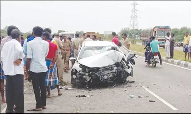 இந்நிலையில் புதுக்கோட்டை மாவட்டம், விராலிமலையை அடுத்து விராலூர் அருகே திருச்சி-மதுரை தேசிய நெடுஞ்சாலையில் சென்றபோது, கார் கட்டுப்பாட்டை இழந்து சாலையோர பாலத்தின் மீது பயங்கர சத்தத்துடன் மோதியது.