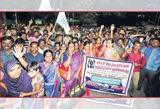 சமவேலைக்கு சம ஊதியம் வழங்கவேண்டும், 7-வது ஊதியக்குழுவில் ஊதிய முரண்பாடுகளை களைய வேண்டும் உள்பட பல்வேறு கோரிக்கைகளை வலியுறுத்தி இடைநிலை ஆசிரியர்கள் தொடர் போராட்டத்தை அறிவித்தனர். உண்ணாவிரதம், அதிகளவு ரத்த தானம், உடல் உறுப்பு தானம் என்று போராட்டத்தை நீட்டிப்பது என்றும் தீர்மானித்திருந்தனர்.