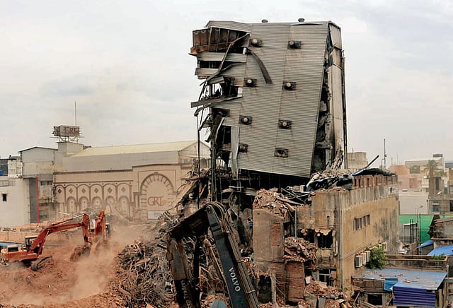 கட்டிடத்தை இடிக்க உயரத்தை அதிகப்படுத்த அனைத்து பணிகளையும் நேற்று இரவு தயார்நிலையில் வைத்திருந்தனர். இன்று(திங்கட்கிழமை) காலை கட்டிடத்தின் மீதமுள்ள பகுதியை பாதுகாப்பாக தரைமட்டமாக்க தனியார் நிறுவனம் திட்டமிட்டு உள்ளது.