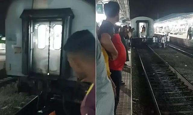 ரெயில் என்ஜினுடன் சேர்ந்த 7 பெட்டிகள் தனியாக சென்றது. இதனால் அதிர்ச்சி அடைந்த பயணிகள் கூச்சலிட்டனர். ரெயிலில் இருந்து பயங்கர சத்தம் கேட்டதை உணர்ந்த என்ஜின் டிரைவர் உடனடியாக ரெயிலை நிறுத்தினார். இதற்கிடையே தனியாக கழன்று ஓடிய 16 பெட்டிகளும் மெதுவாக 4-வது நடைமேடையில் வந்து நின்றது.