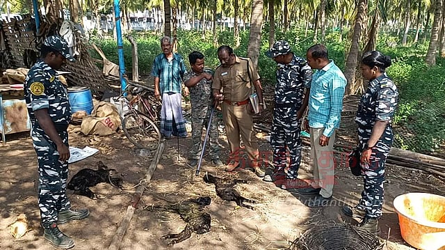 மேலும் அதே பகுதியில் கதிரேசன் என்பவர் 50-க்கும் மேற்பட்ட உயர் ரக சண்டை கோழிகளை தென்னந்தோப்பு பகுதியில் வளர்த்து வந்தார். நேற்று முன்தினம் இரவு அங்கிருந்த 14 கோழிகளை அப்பகுதியில் சுற்றித்திரிந்த தெருநாய்கள் கடித்து கொன்றது தெரிய வந்தது. அப்பகுதியிலும் வனத்துறையினர் நேரில் பார்வையிட்டு ஆய்வு செய்து வருகின்றனர். இதனால் பரமத்திவேலூர் பகுதியிலும் சிறுத்தைப்புலி நடமாட்டம் இருக்குமோ? என்ற அச்சத்தால் பொதுமக்களிடையே மிகுந்த பரபரப்பை ஏற்படுத்தியுள்ளது.
