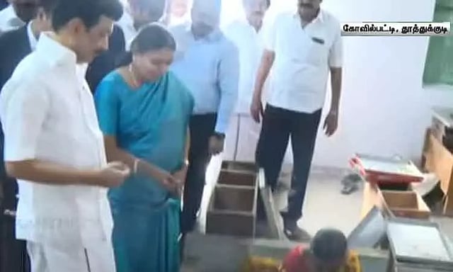இதனை தொடர்ந்து தூத்துக்குடி மாவட்டம் கோவில்பட்டி எட்டயபுரம் சாலையில் உள்ள தனியாருக்கு சொந்தமான தீப்பெட்டி தொழிற்சாலையில் முதல்-அமைச்சர் ஆய்வு மேற்கொண்டார். அங்கு பணியாற்றும் தொழிலாளர்களுடன் கலந்துரையாடி, அவர்களின் கோரிக்கைகளை கேட்டறிந்தார்.