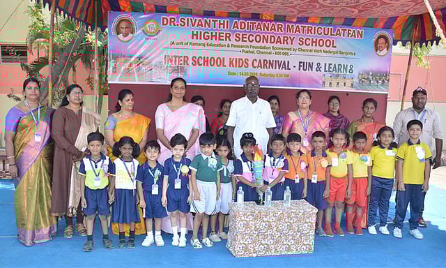 சென்னையை அடுத்த புழலில் உள்ள டாக்டர் சிவந்தி ஆதித்தனார் மெட்ரிக் மேல்நிலைப்பள்ளியில் நேற்று விளையாட்டின் மூலம் கற்றுக்கொள் (Fun and Learn) என்ற தலைப்பில் பள்ளிகளுக்கு இடையேயான குழந்தைகள் திருவிழா கொண்டாடப்பட்டது. சென்னை வாழ் நாடார்கள் சங்கம் மற்றும் காமராஜ் கல்வி ஆராய்ச்சி மற்றும் அறக்கட்டளையின் தலைவர் தங்கமுத்து தலைமையில், சங்கப் பொதுச் செயலாளர் செல்வகுமார் முன்னிலை வகிக்க பள்ளியின் முதல்வர் ராஜராஜேஸ்வரி வரவேற்று பேசினார். இதில் புழல் சுற்றுவட்டாரத்தில் உள்ள 7 மழலையர் பள்ளிகள் டிவைன் பட்ஸ், குருகுலம், லிட்டில் பேர்ல்ஸ், மாடல் லெஜெண்ட்ஸ், சுபம் மற்றும் டைனி கென் கென்ஸ்யா போன்ற பள்ளிகள் தங்களது குழந்தைகள் மற்றும் அவரது பெற்றோர், தாத்தா பாட்டிகளுடன் வந்து கலந்து கொண்டு சிறப்பித்தனர்.