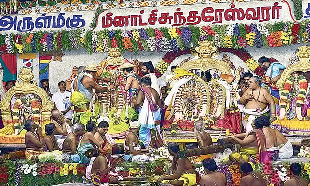 ஆன்லைன் மூலமாக முன்பதிவு செய்யும் பக்தர்கள் https://hrce.tn.gov.in மற்றும் கோவில் இணையதளமான https://maduraimeenakshi.hrce.tn.gov.in-னம் தொடங்கி 22-ம் தேதி இரவு 9 மணி வரை நடைபெறவுள்ளது. பின்னர் திருக்கல்யாண டிக்கெட் குலுக்கல் முறையில் தேர்வு செய்தவர்களுக்கு அலைபேசி, இமெயிலில் 23-ந் தேதி குறுந்தகவல் தெரிவிக்கப்படும்.