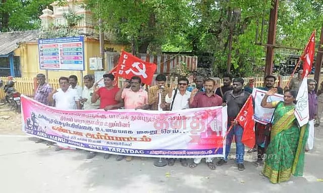 சி.ஐ.டி.யு தொழிற்சங்க மாவட்ட தலைவர் பீர் முகமது ஷா தலைமை தாங்கினார். முத்துமாரி, முருகன், சரவணபெருமாள், ஊரக உள்ளாட்சி துறை ஊழியர் சங்க மாவட்ட செயலாளர் மோகன், ஜனநாயக வாலிபர் சங்கம் அருள் உள்ளிட்டோர் கோரிக்கையை வலியுறுத்தி பேசினர். இதில் செல்லத்துரை, செந்தில், துரை நாராயணன், முத்துலட்சுமி உள்பட பலர் கலந்து கொண்டனர்.