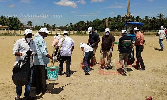 மணல் பரப்பில் சிதறி கிடந்த பிளாஸ்டிக் பொருட்கள், ஐஸ்கிரீம் கப், பேப்பர், பிளாஸ்டிக் பாட்டில்கள் போன்றவற்றை அகற்றி சுத்தம் செய்தனர்.
