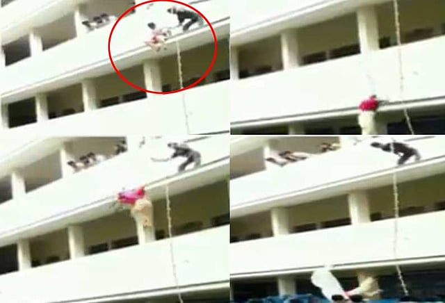 கோவை நரசிபுரத்தில் தனியார் கல்லூரியில் பேரிடர் மேலாண்மை பயிற்சியின் போது 2-வது மாடியில் இருந்து பாதுகாப்பு கயிறு கட்டாமல் பயிற்சியாளர் தள்ளியதில் மாணவி லோகேஸ்வரி உயிரிழந்ததாக புகார் தெரிவிக்கப்பட்டுள்ளது. மாணவியை பிடிப்பதற்காக மாணவர்கள் வலையுடன் இருந்தபோது சன்ஷேடில் அடிபட்டு உயிரிழந்துவிட்டார். மாணவி குதிப்பதற்கு முன்னதாக பயிற்சியாளர் அவரை கீழே தள்ளும் காட்சிகள் அடங்கிய வீடியோ வெளியாகியுள்ளது. மாணவி எதிர்பாராத விதமாக சன்ஷேடில் மோதி கீழே விழுந்தார். அவருடைய தலைப்பகுதியில் பலத்த காயம் ஏற்பட்டது.