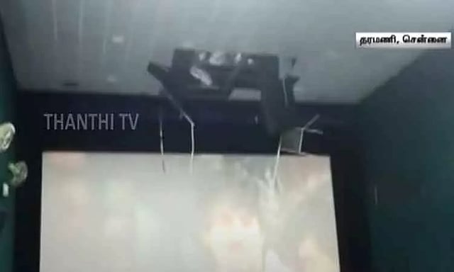 அப்போது திடீரென திரையரங்கின் மேற்கூரை இடிந்து விழுந்ததால் பரபரப்பு ஏற்பட்டது. நல்வாய்ப்பாக திரையரங்கின் மேடை மீது இடிபாடுகள் விழுந்ததால், யாருக்கும் காயம் ஏற்படவில்லை. இந்நிலையில் பராமரிப்பு பணிகளை விரைந்து மேற்கொள்ள வேண்டும் என கல்லூரி நிர்வாகத்திற்கு மாணவர்கள் கோரிக்கை விடுத்துள்ளனர்.