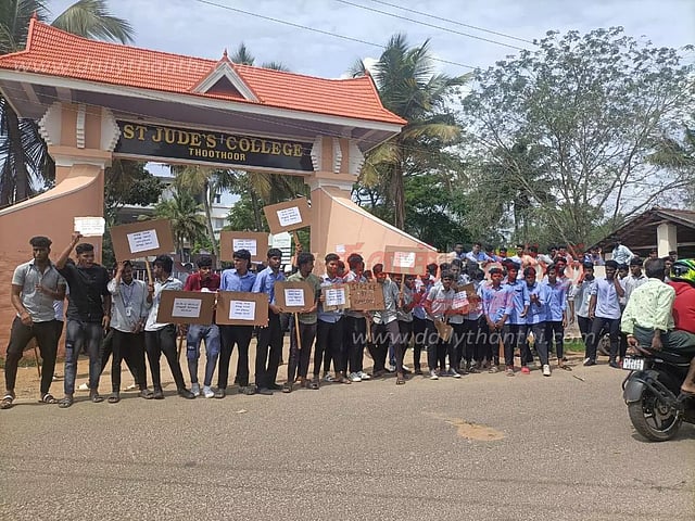 இந்த நிலையில் நேற்று காலை வழக்கம் போல் மாணவ-மாணவிகள் கல்லூரிக்கு வந்தனர். மீனவ மக்கள் மற்றும் பங்கு தந்தைகள் மீது வழக்கு பதிவு செய்யப்பட்டதை கண்டித்து மாணவர்கள் வகுப்புகளை புறக்கணித்து விட்டு கல்லூரியின் முன் ஆர்பாட்டத்தில் ஈடுபட்டனர். அப்போது தங்கள் கோரிக்கைகள் அடங்கிய பதாகைகளை கையில் வைத்து இருந்தனர். ஒருசிலர் சாலையில் அமர்ந்து மறியல் போராட்டத்திலும் ஈடுபட்டனர். இதனால் அந்த பகுதியில் பெரும் பரபரப்பு ஏற்பட்டது. அதை தொடர்ந்து கல்லூரி வளாகத்திலும் வேலி அகற்றப்பட்ட பகுதியிலும் பலத்த போலீஸ் பாதுகாப்பு போடப்பட்டுள்ளது.