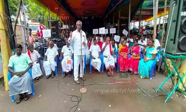 வத்திராயிருப்பு தாலுகாவிற்கு தலைமை ஆஸ்பத்திரியாக வத்திராயிருப்பு அரசு ஆஸ்பத்திரி செயல்பட்டு வருகிறது. இந்த ஆஸ்பத்திரியின் மூலம் தினமும் எண்ணற்ற கிராம மக்கள் பயன்பெற்று வருகின்றனர். இந்தநிலையில் இந்த ஆஸ்பத்திரியில் போதிய டாக்டர்கள் இல்லை, நோயாளிகளுக்கு போதிய அடிப்படை வசதிகள் இல்லை என்ற குற்றச்சாட்டு நீண்ட நாட்களாக உள்ளது.இதுகுறித்து பலமுறை புகார் தெரிவித்தும் நடவடிக்கை எடுக்கப்படவில்லை என கூறப்படுகிறது. இந்தநிலையில் இந்திய கம்யூனிஸ்டு கட்சி சார்பாக வத்திராயிருப்பு அரசு ஆஸ்பத்திரியில் கூடுதலாக மருத்துவர்கள் நியமிக்க வேண்டும், அடிப்படை வசதிகள் செய்து கொடுக்க வேண்டும் என்பன உள்பட பல்வேறு கோரிக்கைகளை வலியுறுத்தி வத்திராயிருப்பு முத்தாலம்மன் பஜார் பகுதியில் தர்ணா போராட்டம் நடைபெற்றது. இதில் மருத்துவமனை நிர்வாகத்திற்கு எதிராக கண்டன கோஷங்கள் எழுப்பப்பட்டன. போராட்டத்திற்கு தேசிய குழு உறுப்பினர் ராமசாமி, முன்னாள் நாடாளுமன்ற உறுப்பினர்கள் அழகிரிசாமி, லிங்கம், முன்னாள் எம்.எல்.ஏ. பொன்னுபாண்டியன், தாலுகா செயலாளர் கோவிந்தன், விவசாய சங்க மாவட்ட செயலாளர் சவுந்தர பாண்டியன் மற்றும் பலர் கலந்து கொண்டனர்.