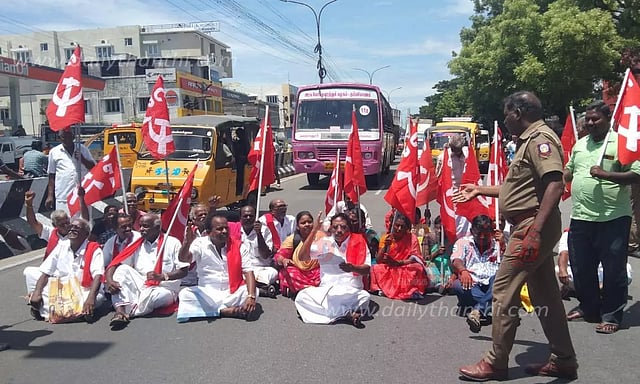 இதனைத்தொடர்ந்து வெங்கடேசபுரம் பிரதான சாலையில் கம்யூனிஸ்டு கட்சியினர் மறியலில் ஈடுபட்டனர். இதையடுத்து மாநில கட்டுப்பாட்டுக்குழு உறுப்பினர் வீர.ஞானசேகரன், ராஜூ, ஒன்றிய செயலாளர் முத்துசாமி, ஏ.ஐ.டி.யூ.சி. தொழிற்சங்க மாவட்ட தலைவர் ஜெயராமன் மற்றும் 8 பெண்கள் உள்பட 28 பேரை போலீசார் கைது செய்தனர்.