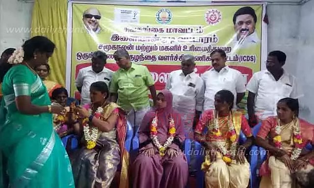 இளையான்குடி ஒன்றியத்தில் சமூக நலன் மற்றும் மகளிர் உரிமைத்துறை ஒருங்கிணைந்த குழந்தை வளர்ச்சி திட்ட பணிகள் மூலம் சமுதாய வளைகாப்பு விழா தாயமங்கலம், சாலைக்கிராமம், பெருமச்சேரி ஆகிய ஊராட்சிகளில் நடைபெற்றது. நிகழ்ச்சியில் முன்னாள் அமைச்சரும், மானாமதுரை எம்.எல்.ஏ.வுமான தமிழரசி ரவிக்குமார் கலந்துகொண்டு கர்ப்பிணிகளுக்கு சமுதாய வளைகாப்பு விழா நடத்தி வைத்தார். அப்போது பிறக்கும் தங்களின் குழந்தைகளுக்கு தூய தமிழில் பெயர் வைக்கும்படி அவர் கேட்டுக்கொண்டார். நிகழ்ச்சிகளுக்கு ஊராட்சி மன்ற தலைவர்கள் மலைராஜ், தங்கம், சாவித்திரி முருகன் ஆகியோர் முன்னிலை வகித்தனர். வட்டார ஒருங்கிணைப்பாளர் ஜூலி பெனிதா அனைவரையும் வரவேற்றார்.