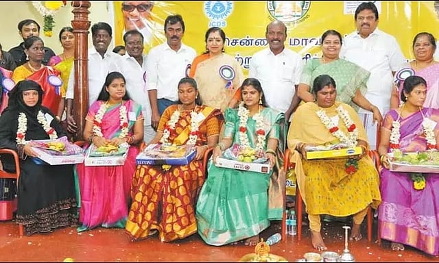 ஒருங்கிணைந்த குழந்தைகள் வளர்ச்சி பணிகள் துறை சார்பில் சென்னை சைதாப்பேட்டையில் சமுதாய வளைகாப்பு விழா நேற்று நடந்தது. விழாவில் அமைச்சர்கள் மா.சுப்பிரமணியன், கீதா ஜீவன் ஆகியோர் கலந்துகொண்டு 285 கர்ப்பிணிகளுக்கு நலங்கு வைத்து சீர்வரிசைகளை வழங்கினர்.
