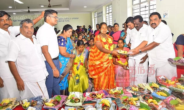 சிறப்பு விருந்தினராக தமிழக பிற்படுத்தப்பட்ட நலத்துறை அமைச்சர் ராஜகண்ணப்பன் கலந்துகொண்டு 100 கர்ப்பிணிகளுக்கு சீதன பொருட்கள் மற்றும் இலவச சேலைகளை வழங்கினார். இதில் மக்கள் செய்தி தொடர்பு அலுவலர் பாண்டி, துணை அலுவலர் விஜயகுமார், ஒன்றிய செயலாளர்கள் சண்முகம், ஜெயபால் பூபதிமணி, குலாம் முகைதீன், கோவிந்தராஜ், வாசுதேவன், மனோகரன், சண்முகநாதன், முதுகுளத்தூர் தாசில்தார் சடையாண்டி, ஊராட்சி ஒன்றிய ஆணையாளர்கள் ஜானகி, அன்பு கண்ணன், அமைச்சர் நேர்முக உதவியாளர் கண்ணன், பேரூராட்சி தலைவர் ஷாஜகான், செயல் அலுவலர் மாலதி, வட்டார குழந்தைகள் வளர்ச்சி திட்ட மேற்பார்வையாளர்கள் சண்முகசுந்தரி, இந்திராணி, ராஜேஸ்வரி ஒருங்கிணைப்பாளர் இருளாகி, நகரச்செயலாளர் வெங்கடேசன், ஒன்றிய கவுன்சிலர் நாகஜோதி ராமர், ஊராட்சி மன்ற தலைவர் ஜெயலட்சுமி வடமலையான், சட்டமன்ற உதவியாளர்கள் சத்தியேந்திரன், டோனி தாமஸ், ரஞ்சித் மணிகண்டன் உள்பட பலர் கலந்து கொண்டனர்.