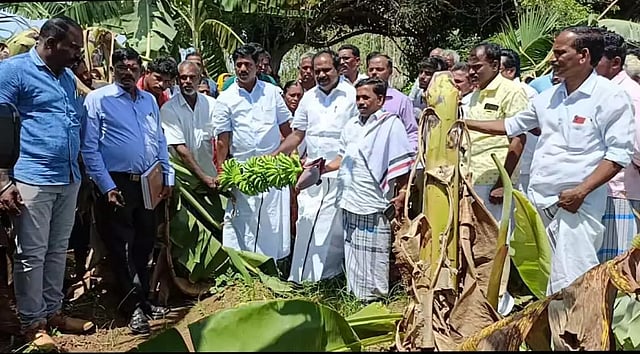 ஆலங்குடி, கறம்பக்குடி உள்ளிட்ட பகுதிகளில் 10-க்கும் மேற்பட்ட கிராமங்களில் வாழை, சோளம், நெற்பயிர்கள் உள்ளிட்ட பயிர்கள் கடுமையாக சேதம் அடைந்துள்ளன. பாதிக்கப்பட்ட பகுதிகளை வேளாண் துறை அதிகாரிகளும், வருவாய்த்துறை அதிகாரிகளும் கணக்கீடு செய்யும் பணிகளில் ஈடுபட்டு வருகின்றனர், பாதிக்கப்பட்ட விவசாயிகளுக்கு உரிய இழப்பீட்டு தொகை வழங்க முதல்-அமைச்சரின் கவனத்திற்கு கொண்டு சென்று பெற்று தரப்படும். வாழை விவசாயிகள் வருங்காலத்தில் முறையான காப்பீடு செய்ய அதிகாரிகள் மூலம் நடவடிக்கை எடுக்கப்படும்.