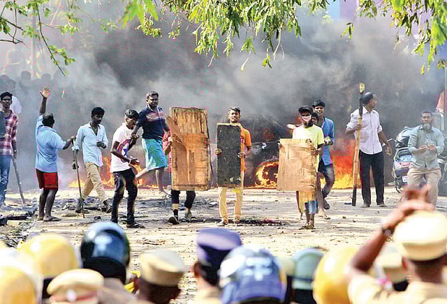 இந்தநிலையில் கடந்த 23ந்தேதி மெரினா கடற்கரையில் போராட்டக்காரர்களுக்கும், போலீசாருக்கும் இடையே மோதல் ஏற்பட்டு வன்முறையாக மாறியது. போலீஸ் நிலையங்கள், குடிசைகள், வாகனங்கள் தீ வைத்து எரிக்கப்பட்டன.
