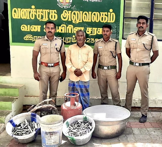 ராமநாதபுரம் வனச்சரகர் சுரேஷ்குமார் உள்ளிட்டோர் நேற்று காலை ரோந்து பணியில் ஈடுபட்டிருந்தனர். அப்போது தேவிபட்டினம் கடற்கரை பகுதியில் ஒரு வீட்டில் கடல் அட்டை வைத்திருப்பதாக ரகசிய தகவல் கிடைத்தது. இதனை தொடர்ந்து மாரியம்மன்கோவில் தெருவில் அயூப்கான் (வயது 53) என்பவரின் வீட்டில் சோதனையிட்டனர் அங்கு பதப்படுத்தப்பட்ட 45 கிலோ கடல் அட்டைகள் இருந்தது தெரிந்தது. அந்த கடல் அட்டைகளையும், பதப்படுத்த பயன்படுத்திய சிலிண்டர் உள்ளிட்ட பொருட்களையும் கைப்பற்றிய வனத்துறையினர் அயூப்கானை கைது செய்தனர். அரசால் தடைவிதிக்கப்பட்டுள்ள கடல்அட்டையை பிடிப்பதும், அதனை விற்பனை செய்வதும் சட்டப்படி குற்றம் என்றும், அதைமீறி இதுபோன்ற செயலில் ஈடுபட்டால் அதிகபட்சமாக 7 ஆண்டுகள் வரை சிறைதண்டனை விதிக்கப்படும் என்றும் வனத்துறையினர் எச்சரித்துள்ளனர்.