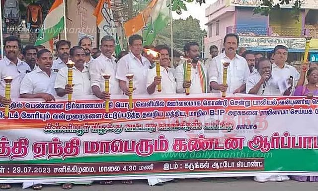 மணிப்பூர் கலவரத்தை கட்டுப்படுத்த தவறிய மத்திய-மாநில அரசுகளை கண்டித்து கிள்ளியூர் கிழக்கு வட்டார காங்கிரஸ் கட்சி சார்பில் கருங்கலில் மெழுகுவர்த்தி ஏந்தி கண்டன ஆர்ப்பாட்டம் நடந்தது. இதற்கு வட்டார தலைவர் ராஜசேகரன் தலைமை தாங்கினார். பேரூராட்சி, ஊராட்சி கட்சி தலைவர்கள் முன்னிலை வகித்தனர். இதில் தமிழ்நாடு சட்டசபை காங்கிரஸ் கட்சியின் துணை தலைவர் ராஜேஷ் குமார் எம்.எல்.ஏ. மெழுகுவர்த்தி ஏந்தி ஆர்ப்பாட்டத்தை தொடங்கி வைத்து பேசினார். இதில் விஜய்வசந்த் எம்.பி., மாநில பேச்சாளர் பால்துரை ஆகியோர் சிறப்பு விருந்தினர்களாக கலந்துகொண்டு பேசினார்கள்.