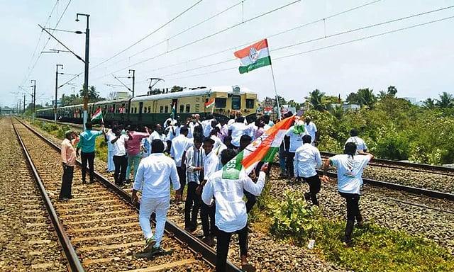 பிரதமர் மோடி குறித்து அவதூறு கருத்து வெளியிட்டதாக தொடரப்பட்ட வழக்கில் ராகுல்காந்திக்கு சூரத் நீதிமன்றம் 2 ஆண்டுகள் சிறை தண்டனை விதித்தது. அதைத்தொடர்ந்து அவரது எம்.பி பதவியும் பறிக்கப்பட்டது. இதை கண்டித்து திருவள்ளூர் தெற்கு மாவட்ட காங்கிரஸ் கட்சி சார்பில் காங்கிரஸ் கட்சி நிர்வாகிகள், தொண்டர்கள் உட்பட 100-க்கும் மேற்பட்டோர் நேற்று மதியம் ஆவடி-இந்துக்கல்லூரி ரெயில் நிலையங்களுக்கு இடையே புறநகர் மின்சார ரெயில்கள் செல்லக்கூடிய மார்க்கத்தில் திடீரென தண்டவாளத்தில் ரெயில்களை மறித்து ஆர்ப்பாட்டத்தில் ஈடுபட்டனர். இதனால் சென்னையிலிருந்து அரக்கோணம் மார்க்கமாகவும், அரக்கோணத்தில் இருந்து சென்னை மார்க்கமாகவும் செல்லக்கூடிய புறநகர் மின்சார ரெயில்கள் தாமதமாக சென்றன. இதைத்தொடர்ந்து சம்பவ இடத்திற்கு வந்த ஆவடி போலீசார் ரெயில் மறியலில் ஈடுபட்டவர்களை கைது செய்து ஆவடியில் உள்ள தனியார் மண்டபத்தில் தங்க வைத்து பின்னர் மாலை அனைவரையும் விடுதலை செய்தனர்.
