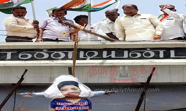 இந்த நிலையில் நெல்லை கொக்கிரகுளத்தில் உள்ள காங்கிரஸ் கட்சி அலுவலக மாடியில் நேற்று மணிப்பூர் குற்றவாளியின் உருவபொம்மையை தூக்கிலிட்டு நூதன போராட்டம் நடந்தது. மாடியின் வெளியே நீட்டியவாறு வைக்கப்பட்ட கம்பில் குற்றவாளியின் உருவ பொம்மையை கயிற்றில் தூக்கிலிட்டவாறு காங்கிரசார் தொங்க விட்டனர். மாநகர மாவட்ட காங்கிரஸ் தலைவர் சங்கர பாண்டியன் தலைமையில் நடந்த போராட்டத்தில் ஏராளமான காங்கிரசார் பங்கேற்று கண்டன கோஷங்களை எழுப்பினர்.