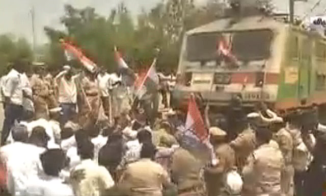 இதனை தொடர்ந்து, காவல் துறையினர் சம்பவ இடத்திற்கு விரைந்து வந்து ரெயில் மறியலில் ஈடுபட்டவர்களை அங்கிருந்து அப்புறப்படுத்தி கைது நடவடிக்கையில் ஈடுபட்டனர்.
