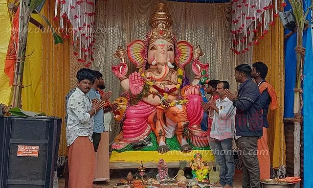 ஆனால் பொள்ளாச்சி பி.கே.எஸ். காலனியில் 13 அடி உயர சிலை பிரதிஷ்டை செய்யப்பட்டு இருந்தது. இதை அறிந்த நகர கிழக்கு போலீசார் விரைந்து வந்து, அந்த சிலையை வைக்க அனுமதி கிடையாது என்று கூறினர். தொடர்ந்து பூஜைகள் செய்து வழிப்பட்ட பிறகு போலீஸ் பாதுகாப்புடன் பக்தர்கள் சிலையை கொண்டு சென்று ஆற்றில் கரைத்தனர்.